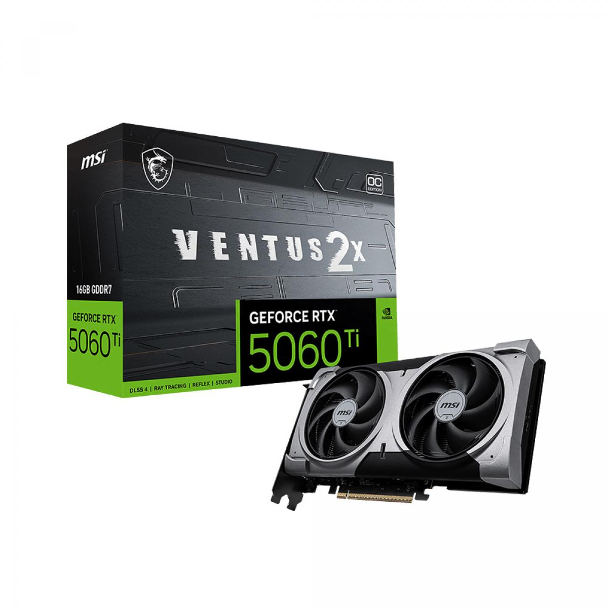 بطاقة MSI GeForce RTX 5060 Ti 16G VENTUS 2X OC PLUS تقدم أداءً قوياً ومستمراً لعشاق الألعاب وصناع المحتوى.مزودة بذاكرة ضخمة 16GB GDDR6 لتشغيل الألعاب الحديثة بسلاسة عالية على دقة 1080p و 2K، مع تصميم تبريد ثنائي المراوح يضمن درجات حرارة منخفضة واستقرار ممتاز.نسخة OC PLUS تأتي بترددات محسّنة تمنحك أداءً إضافياً دون التضحية بالهدوء أو الاعتمادية.
