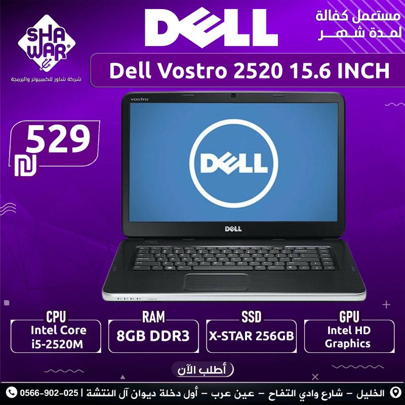 هذا اللابتوب من طراز Dell Vostro 2520 هو جهاز مستعمل بحالة جيدة، يوفر شاشة كبيرة بحجم 15.6 إنش وأرخص سعر في فئته. هو الخيار الأمثل للمهام المكتبية الأساسية، التصفح، والعمل الذي يتطلب شاشة واسعة.