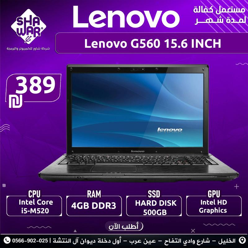 لابتوب Lenovo G560 هو جهازك المثالي إذا كنت تبحث عن شاشة كبيرة ومريحة بسعر اقتصادي للغاية. إنه الخيار الأذكى للاستخدام المنزلي اليومي، مشاهدة الأفلام، أو تصفح الإنترنت دون إنفاق الكثير!